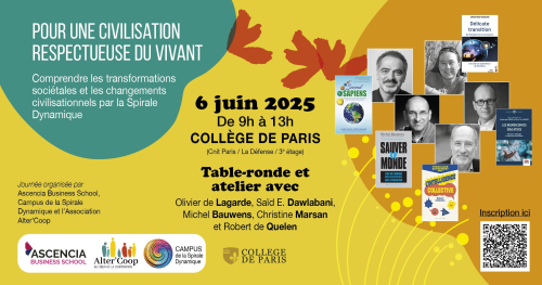 (4) Spirale Dynamique : modèle permettant de comprendre les systèmes de valeur des personnes des organisations et des civilisations et éventuellement accompagner leur évolution. Accès à plus d’informations.